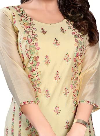 - Color : Beige Colour || Style : Staight || Length : Calf Length || Floral Hand Embriodery.