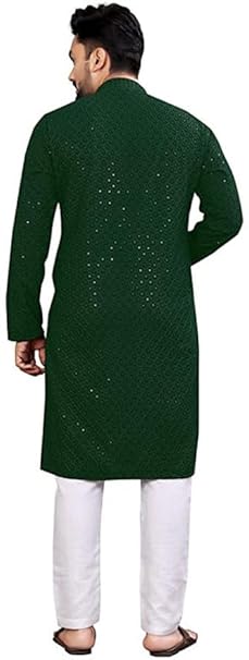 - Generic Name : Men's Chikankari Green Coloured Kurta