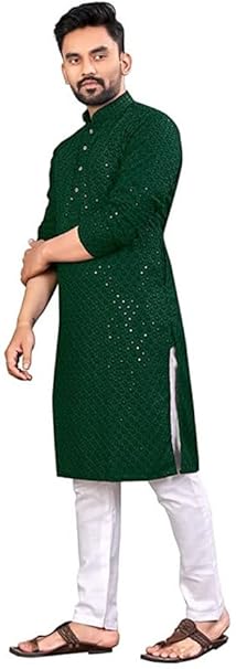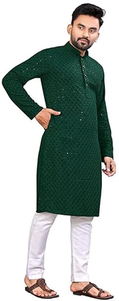 This Men's Chikankari Sequins Pure Rayon Kurta From Lookmark Is Suitable For A Comfortable Casual Look In All Seasons. This Kurta With Intricate Embroidered Pattern Will Look Trendy During Festivities, Celebrations And Wedding Functions. It Gives A Great Feel As It Is Made Of Soft Fabric. It Can Be Worn With A Pair Of Jeans/ Denim/ Pyjama Pants Or Trouser Pants. Men Can Wear It To Look Stylish.