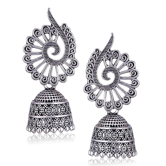 - Earrings for Women Jewellery Earrings Afghani Jhumka earrings ear rings for Girls Women latest design stylish party wear ,Material: Oxidized Silver ,Country of Origin: India , Brand-MEENAZ