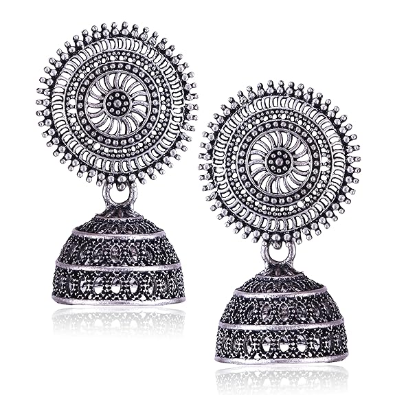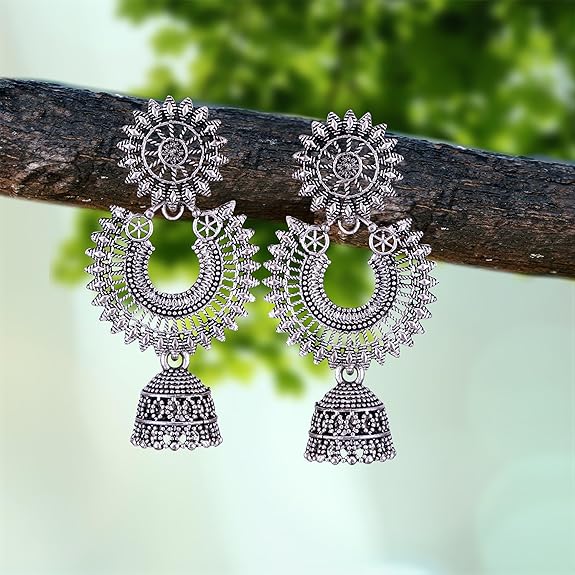 - Oxidised Earrings for Women Oxidized Silver Chandbali Traditional Jhumka Earrings for Women and Girls