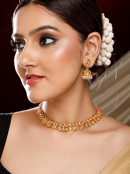 - Sophisticated Collar Necklace: Designed to sit gracefully near the collarbone, the necklace exudes a modern yet traditional charm.