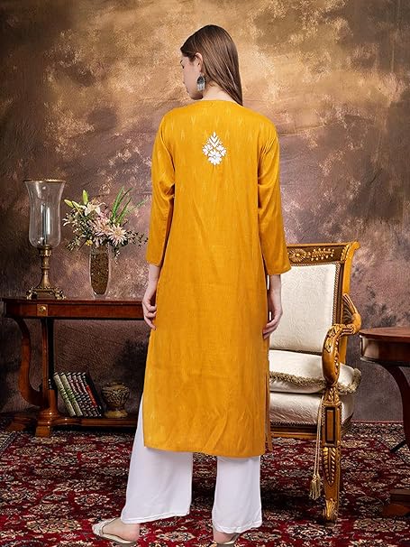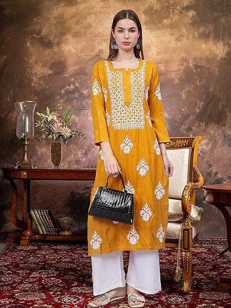 - Color: Mustard, Fabric: Rayon , Length: Knee Length, 45 Inches