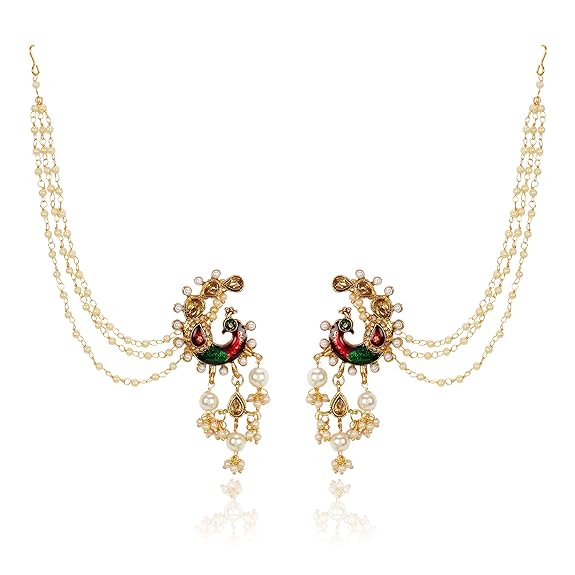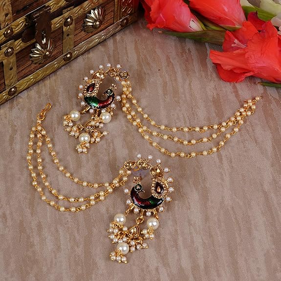 - Gold Plated Pearl Traditional Earrings with Hair Chain