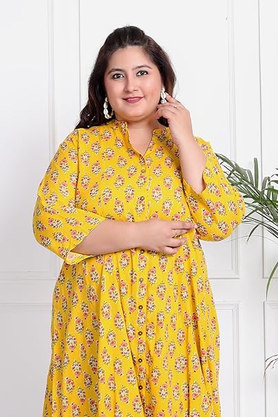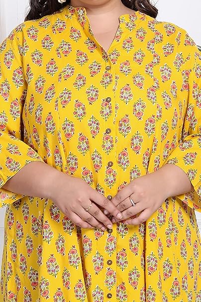 Color Designer A Line Cotton Blend kurta . This Cotton kurta has side slits with solid yoke, highlighted Indigo print design, 3/4th sleeves & Round neck. it looks too pretty with stunning look while wearing, this designer Kurti will make you the star of this upcoming season, it's made from Cotton Blend Fabric Product.This is Designed as per the latest trends to keep you in sync with high fashion and other occasion, it will keep you comfortable all day long.We believe in better clothing products cause helping women's to look pretty, feel comfortable is our ultimate goal.Our collection includes different styles of cotton Kurta that cater to a wide variety of the wardrobe requirements of the Indian woman.