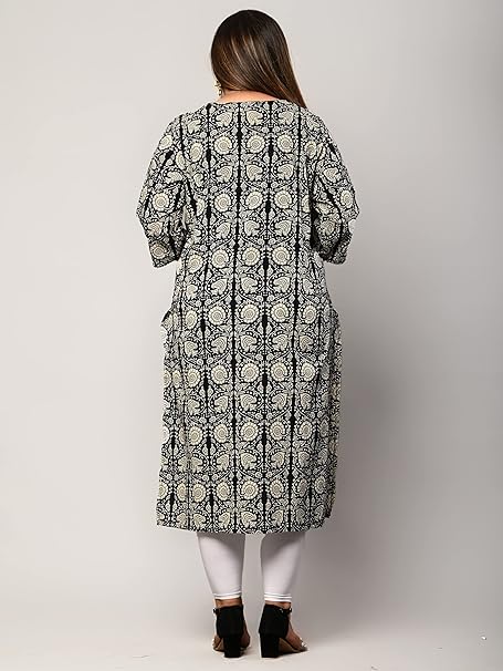 Black Color Designer straight Cotton kurta . This Cotton kurta has 3/4th sleeves & Henley neck. it looks too pretty with stunning look while wearing, this designer Kurti will make you the star of this upcoming season, it's made from 100% Cotton Fabric Product.This is Designed as per the latest trends to keep you in sync with high fashion and other occasion, it will keep you comfortable all day long.