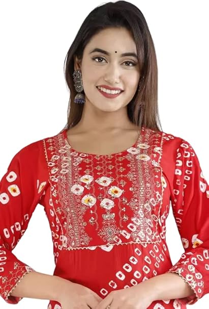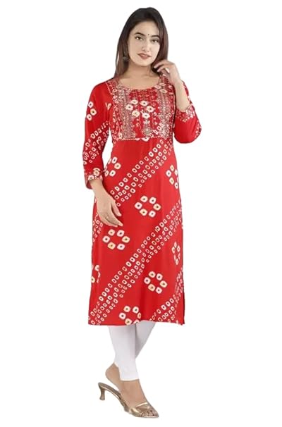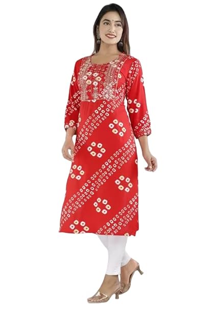 - Neck Type: Round Neck; Sleeve Type: 3/4th Sleeves; Item Length: Knee length