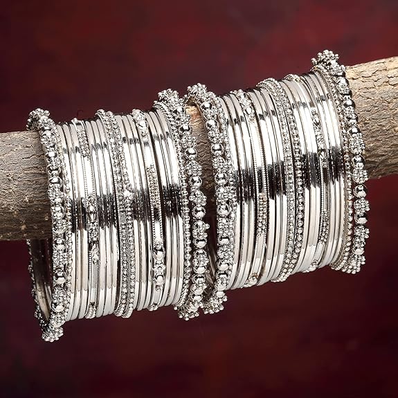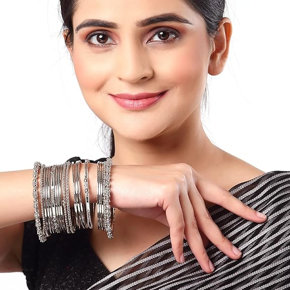 - What You Get:- 40N (Set of 20 Pair) Silver Plated Oxidized Bracelet Bangles Set